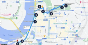 I think you deserve a drink and a toast to an epic adventure. Just past the bridge back towards the promenade, you’ll find a popular spot for sundowner drinks; Stadtstrand-Düsseldorf Rheinkniebrücke. Enjoy the sunset, views, drinks, and atmosphere. Cheers!